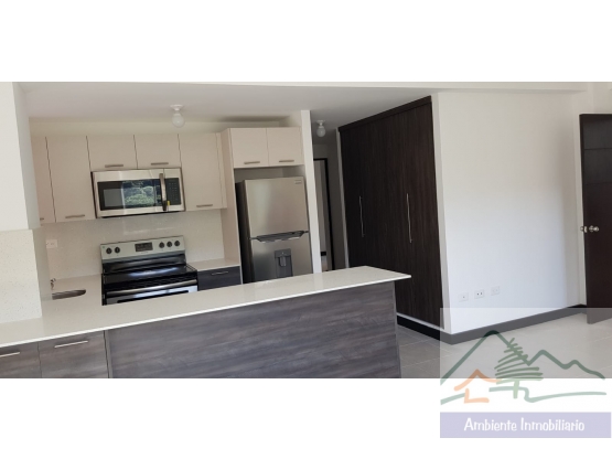 - Cocina con línea blanca (estufa, microondas + lavadora y secadora de ropa)